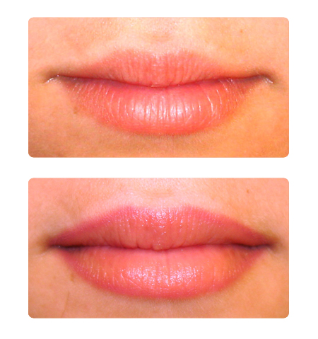 With permanent makeup, your lip line will be redefined and shaped the way they once were, or the way they should have been. The lip is then filled in with custom mixed color, the color you probably had in your youth. This gives the benefit of lip liner and a full healthy lip color in one procedure. For a deeper shade, darker colors may be used. »click on the pics below to enlarge